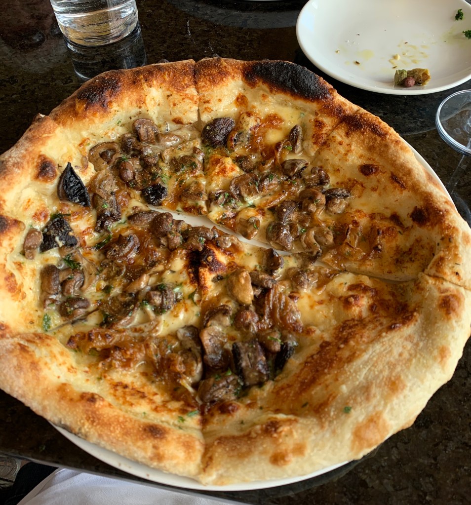 I had a pizza with wild and cultivated mushrooms with white sauce, caramelized onions and alpindon cheese. I love pizza and mushroom should be my favourite but I’m often disappointed. This was the best I’ve ever had.